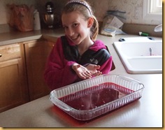 We cooked. Kinda, Jell-O, not sure that really qualifies as “cooking”. It’s a good lesson in matter though, and watching those tiny red crystals swirl around and dissolve is just cool.